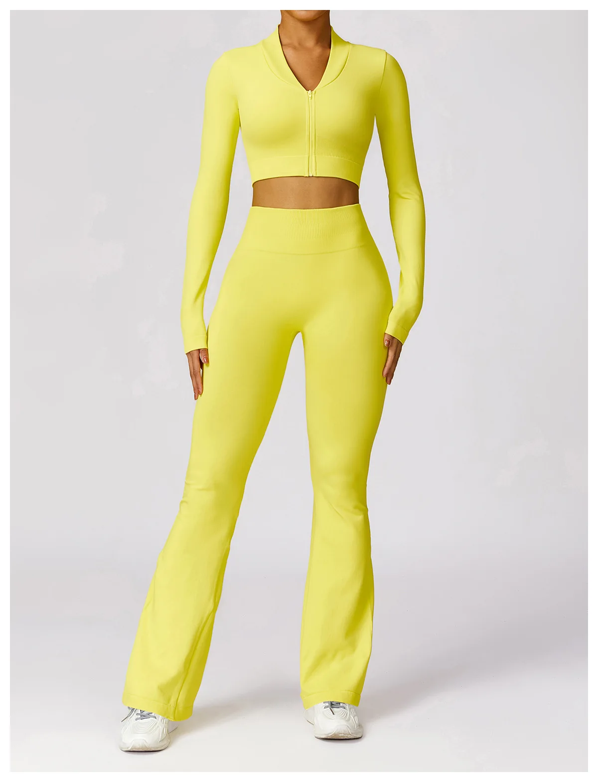 The seamless design of these yoga suits ensures a smooth, comfortable fit, enhancing your movement during workouts.
